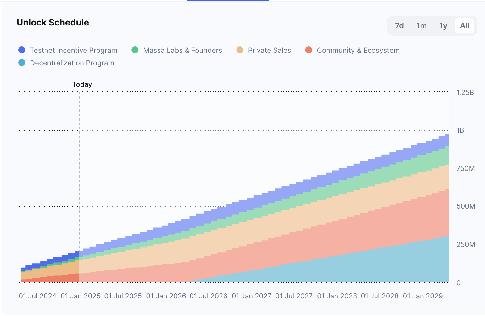 Looking at the unlock chart, large portions of tokens are set to be released gradually over the coming years. Even if emissions via block rewards are reduced, token unlocks will still introduce supply-side pressure, especially from: